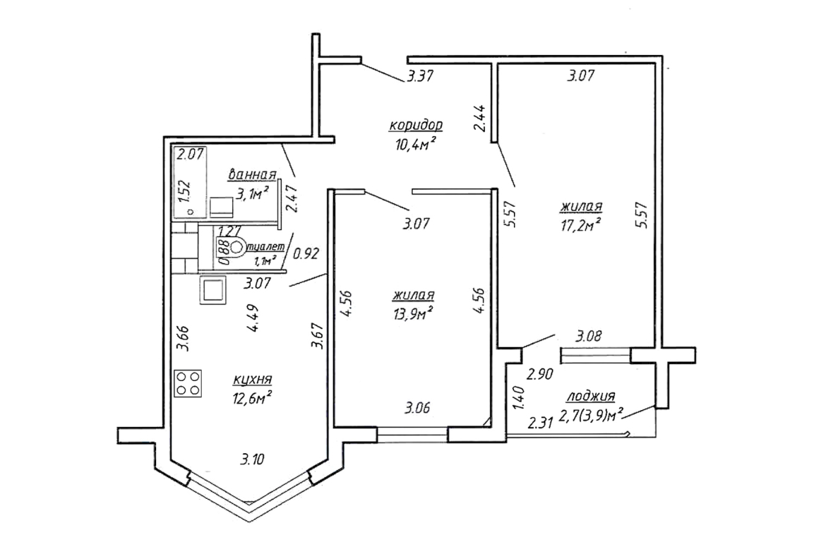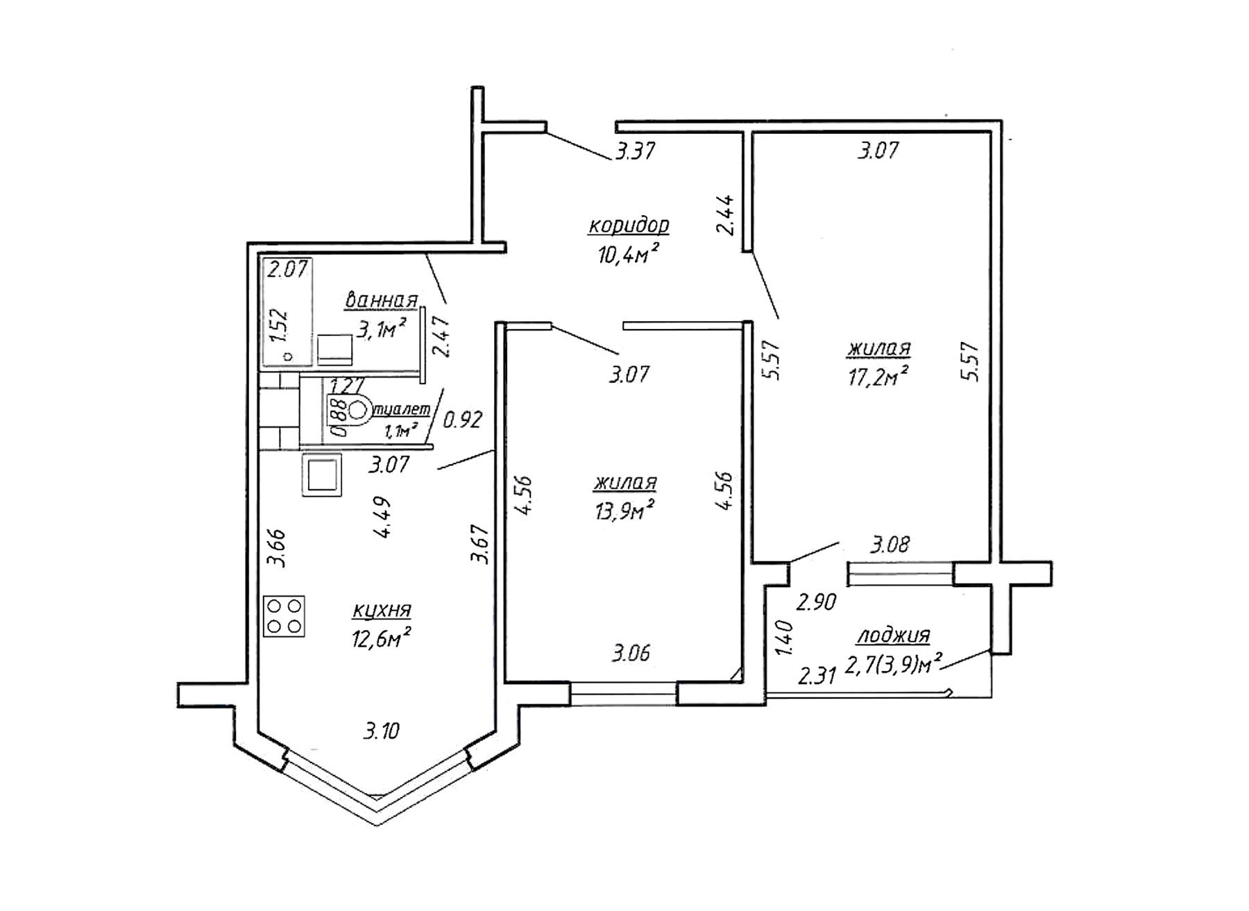 Сведения об объекте Площадь (кв.м): 58,3 (71,0 СНБ)